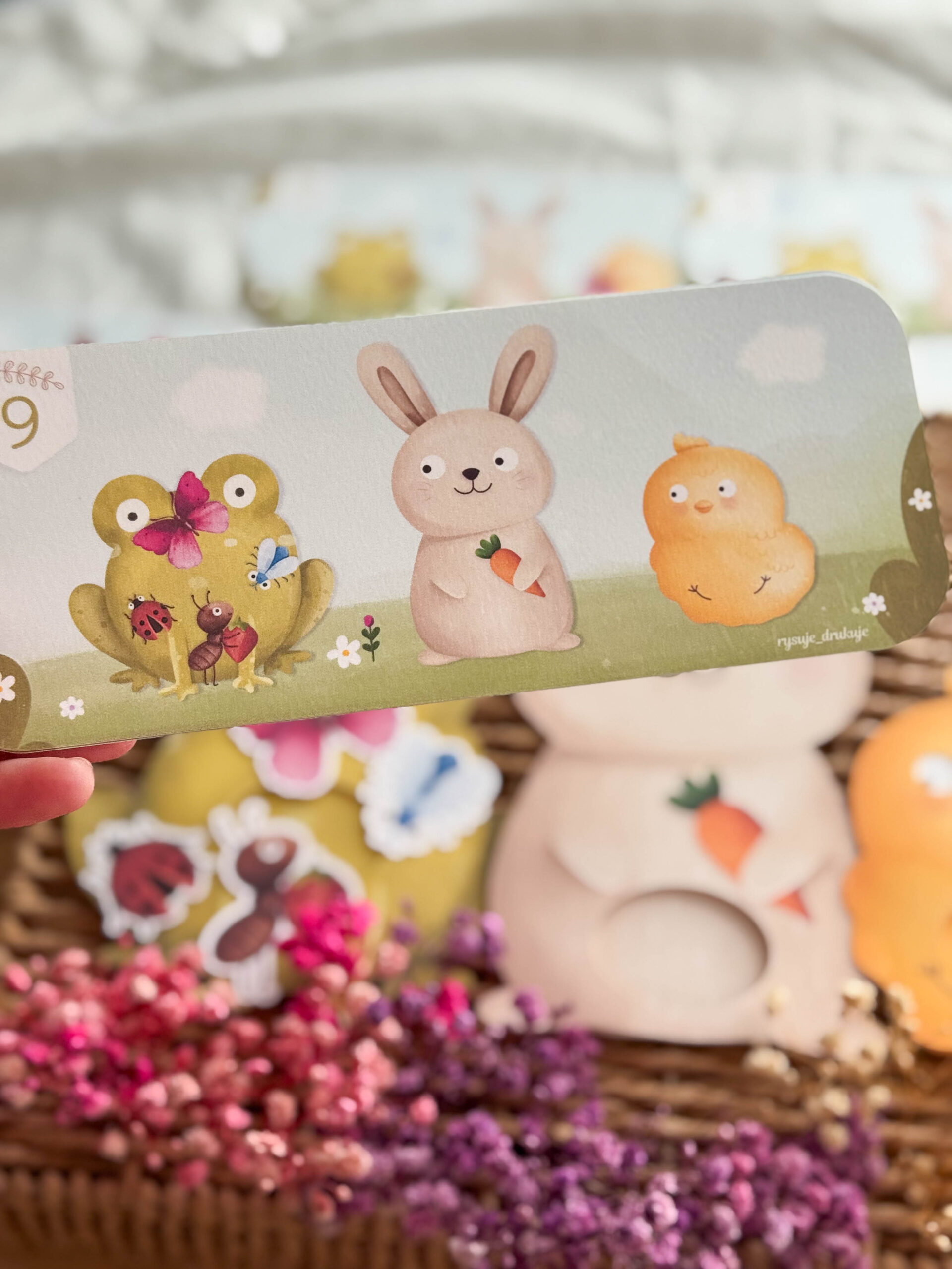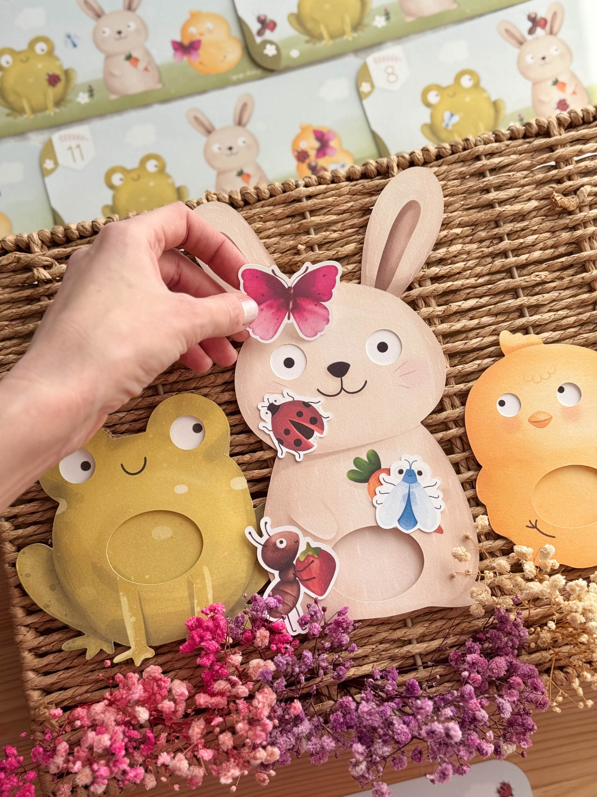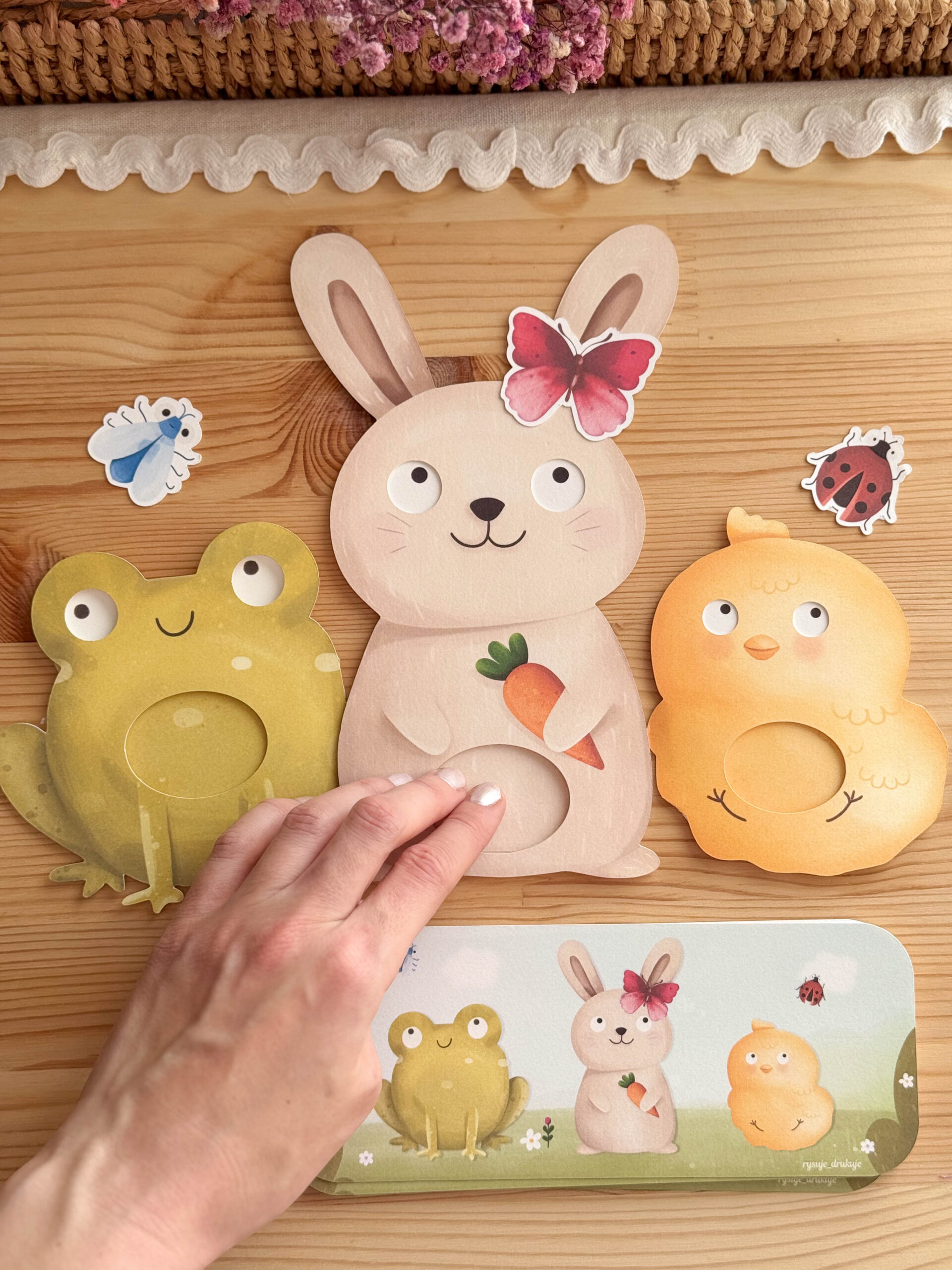 • Zajączka, Żabkę i Kurczaczka z ruchomymi oczkami