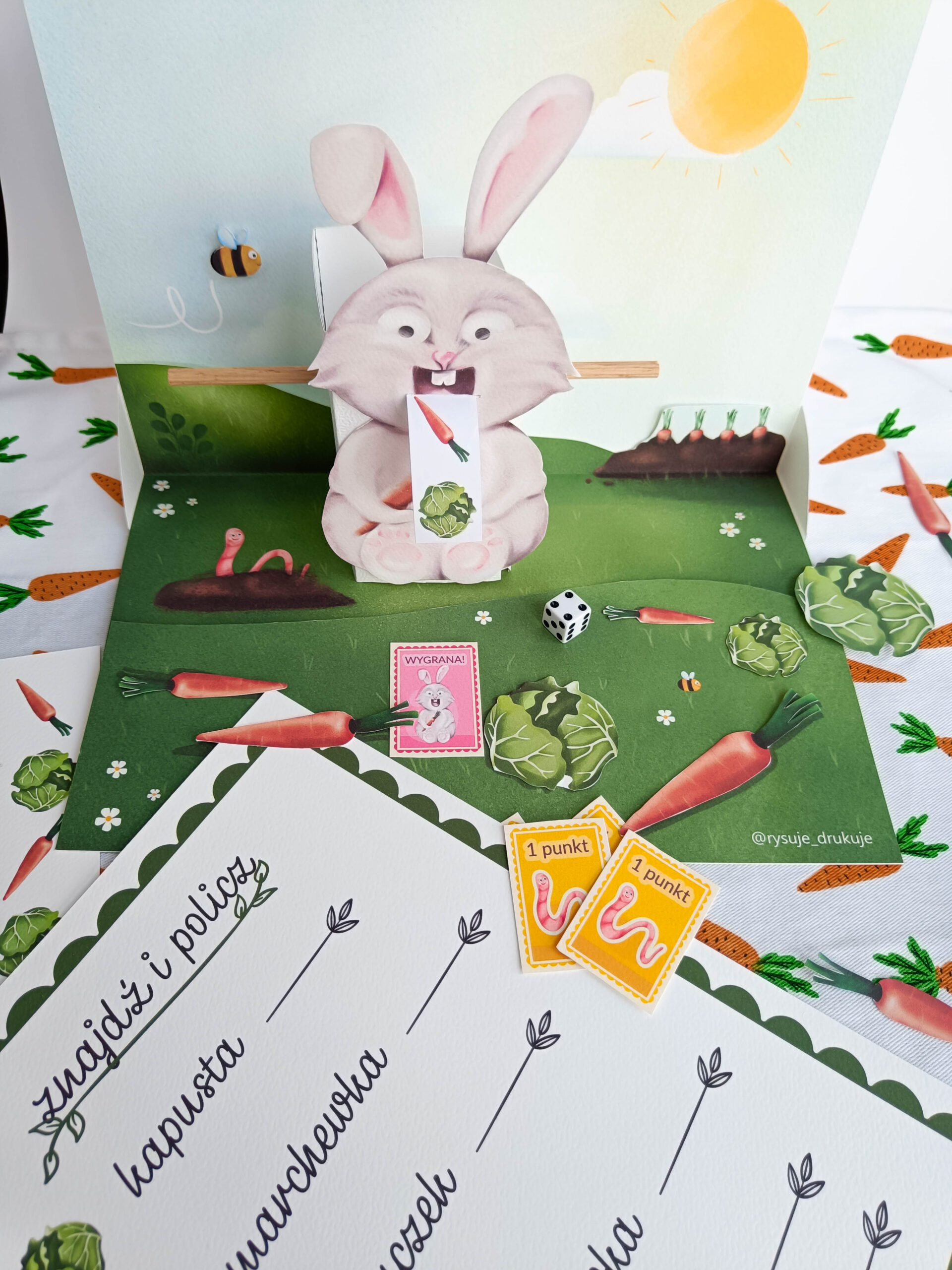Gra z Królikiem Marchewką – więcej informacji o zasadach znajdziesz na moim profilu na Instagramie.